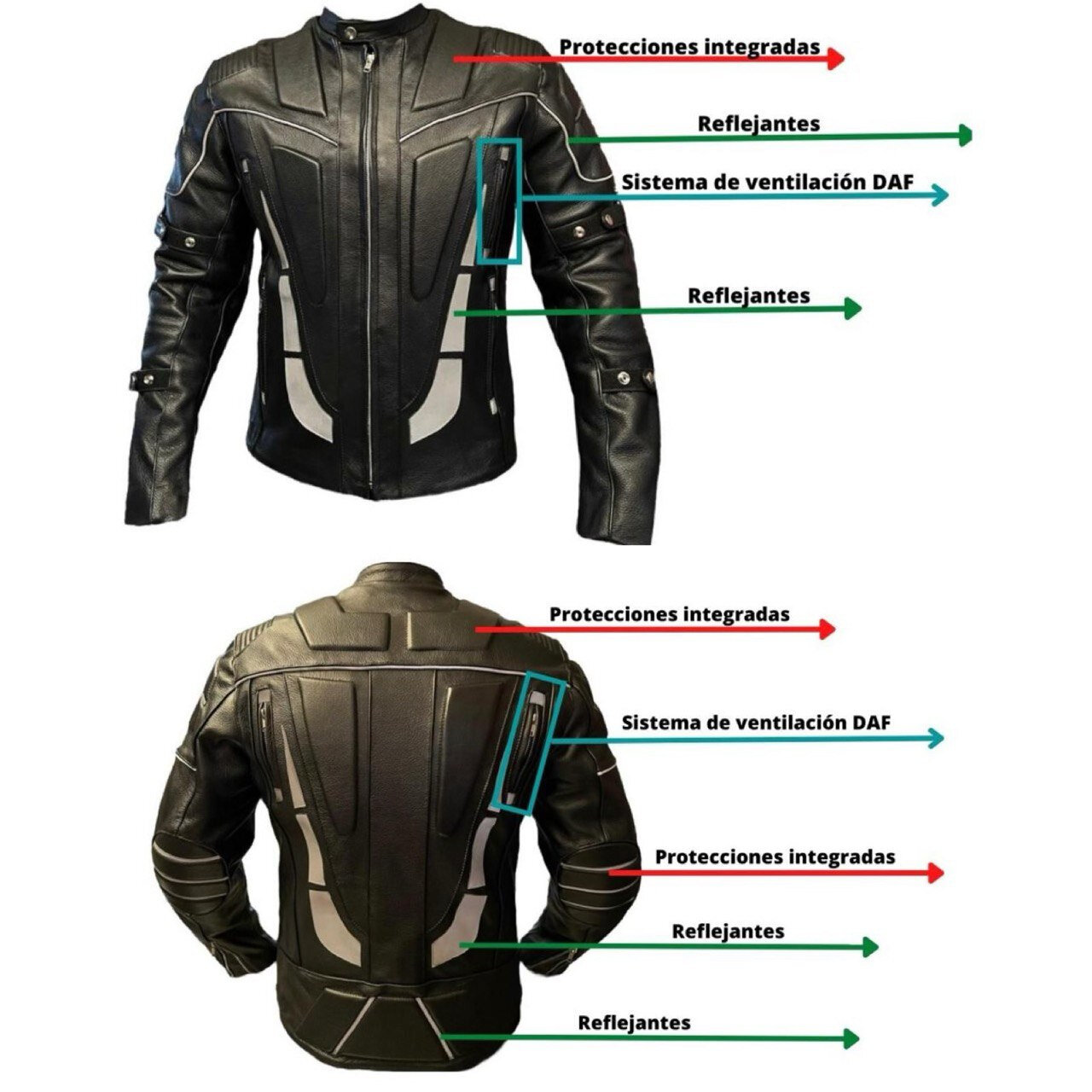 Confeccionada en piel de alta calidad, esta chamarra ofrece resistencia, comodidad y un diseño deportivo ideal para la conducción. Cuenta con detalles reflejantes que mejoran la visibilidad en condiciones de poca luz, y propiedades impermeables que la hacen perfecta para el otoño e invierno. Diseñada para brindar seguridad y estilo en cada trayecto.